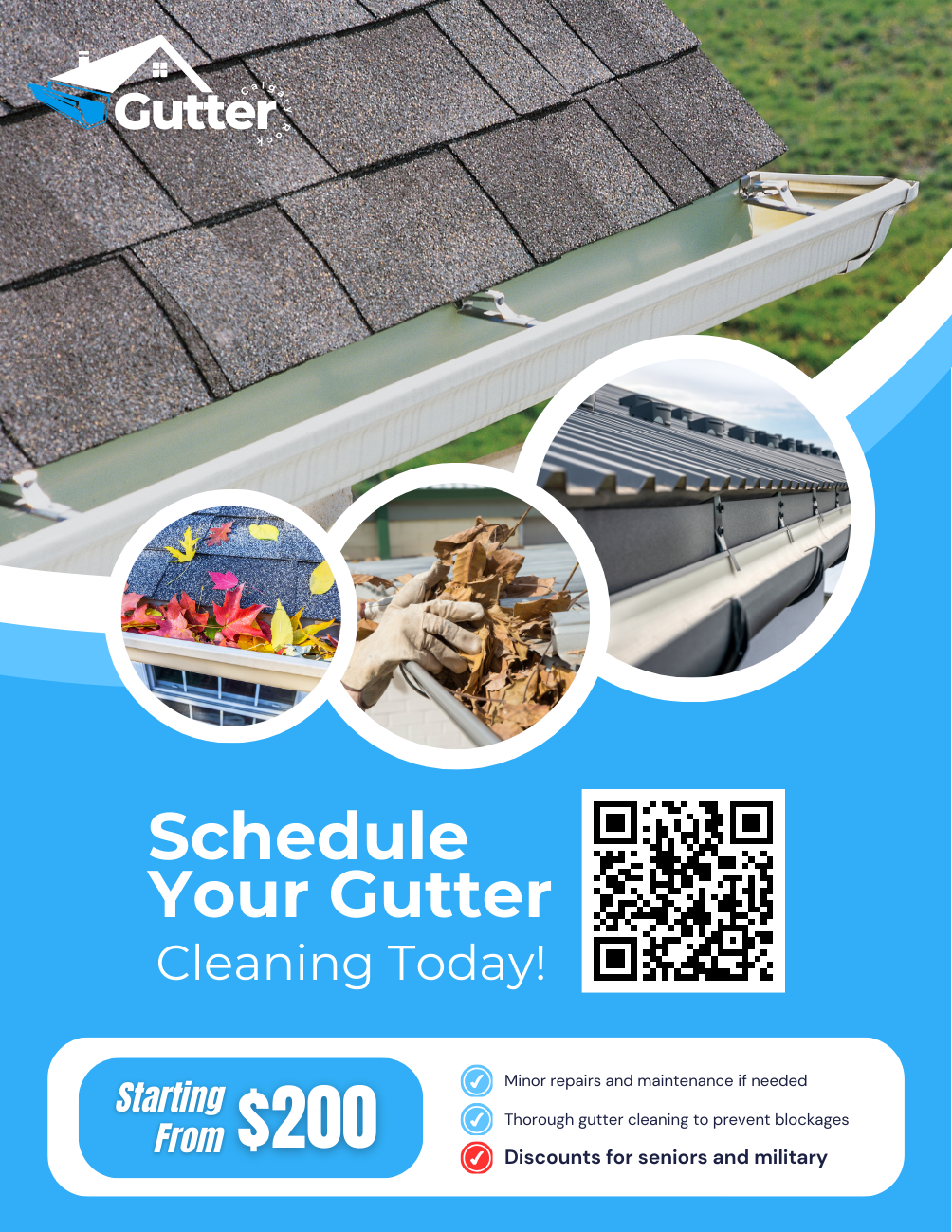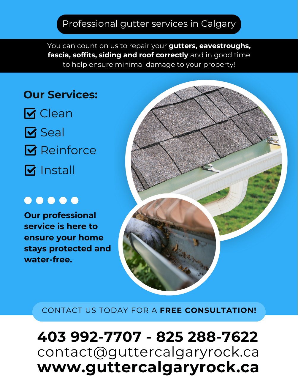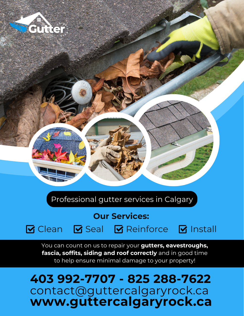 Brand and visual identity creation for a gutter cleaning and maintenance company. In addition to the brand, business cards, flyers, t-shirts, a website, and social media were developed.